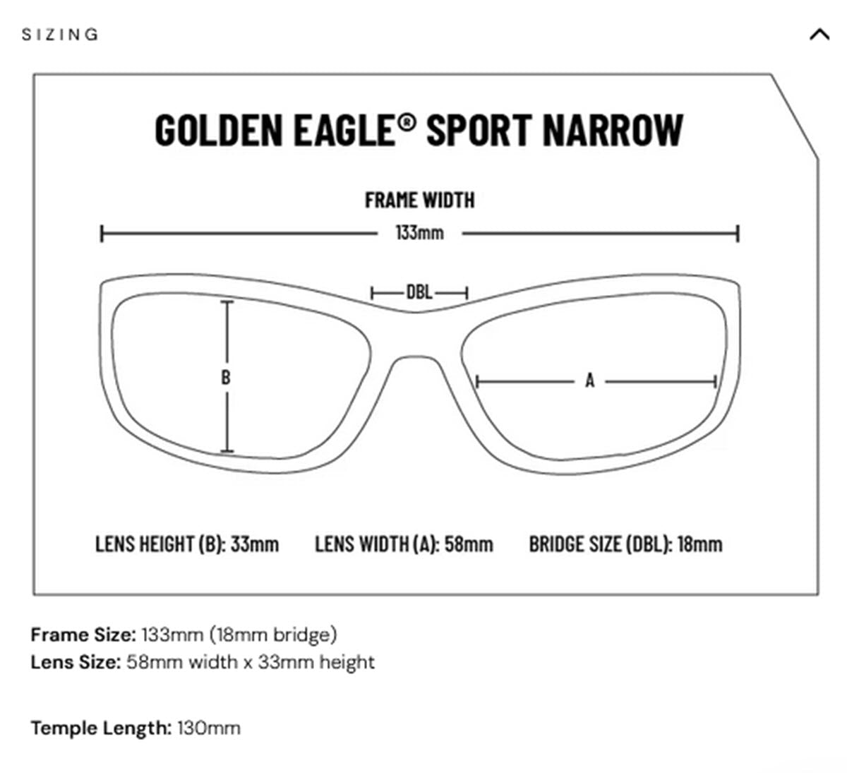 Each of these items are sized in millimeters and the sum of the width of 2 hinges, 1 bridge and 2 lens eye sizes will give you the inside width of a pair of sunglasses in millimeters. You can then convert that number to inches and compare with the sunglasses measurement you made earlier.