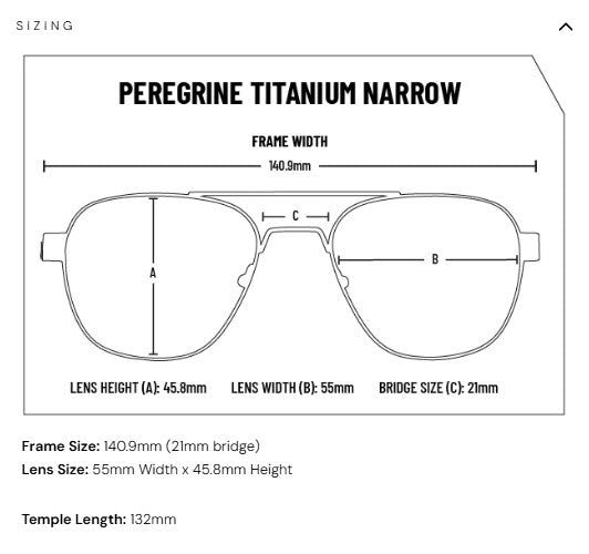Peregrine sunglasses have shatter-resistant polycarbonate lenses that combine exceptional optical clarity and UV protection. The 1mm ultra-thin temples slide under headgear with no pressure points. The strong titanium front combines with Resilamide™ temples that bend to fit any face for maximum comfort. Experience outstanding visual acuity and a comfortable frame....